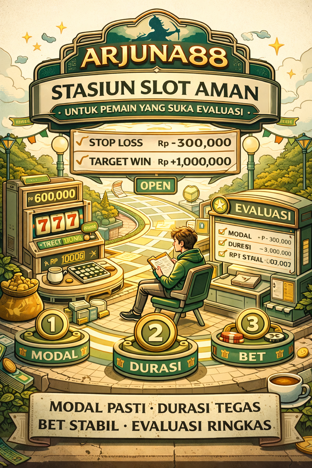 ARJUNA88: Stasiun Slot Aman untuk Pemain yang Suka Evaluasi adalah konsep bermain yang menempatkan kamu sebagai pengelola sesi. Kamu tetap bisa menikmati slot, tapi kamu punya ritme: setel modal, setel waktu, jaga bet stabil, pakai checkpoint, lalu tutup sesi dengan evaluasi singkat. Dengan begitu, permainan terasa lebih aman, keputusan lebih tenang, dan modal lebih terjaga.